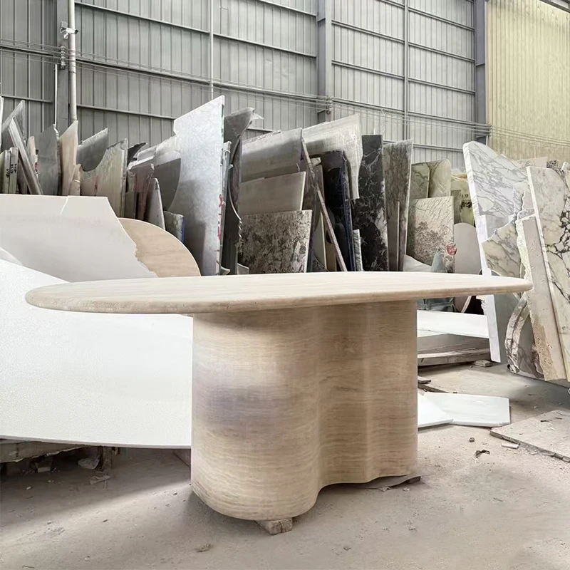 Modern Minimalist Nature Stone Myra Beige Travertine Coffee Table Dining Table for Living Room and Dining Area