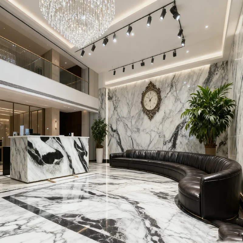 Installation of the Paia White Panda Big Slab is straightforward for professionals, and its large size means fewer gaps and joints, creating a more hygienic and elegant space. Whether used as a kitchen countertop or a waterproof wall covering, this slab brings both function and refined aesthetics.