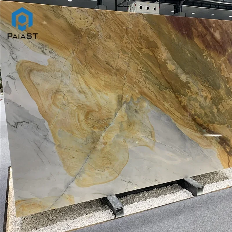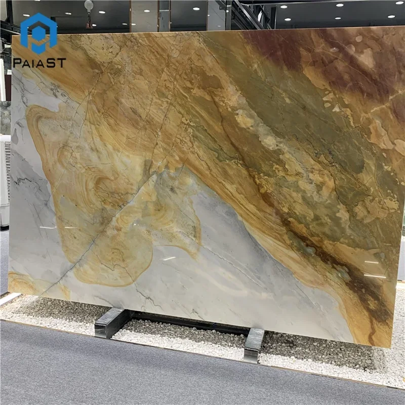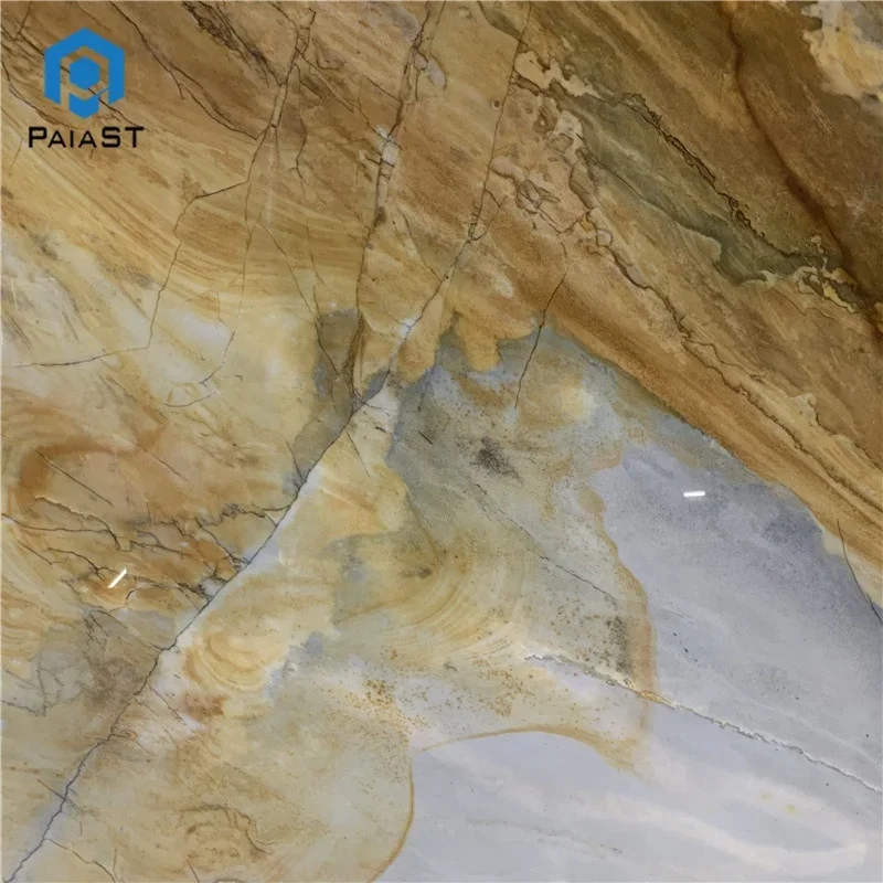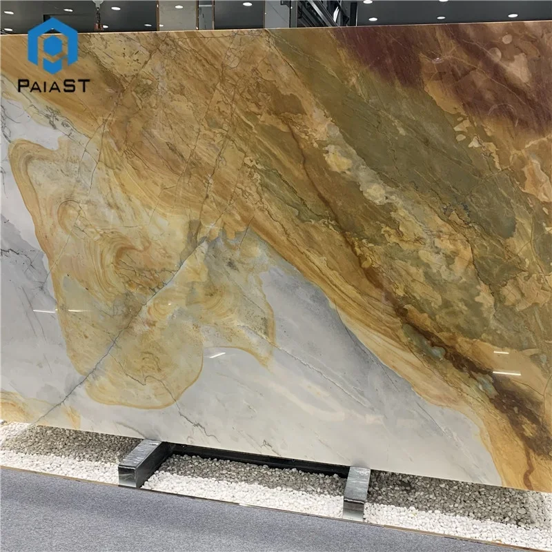 Natural Exotic Stone Golden Quartzite Yellow Marble Slabs For Hotel Hall Background Wall