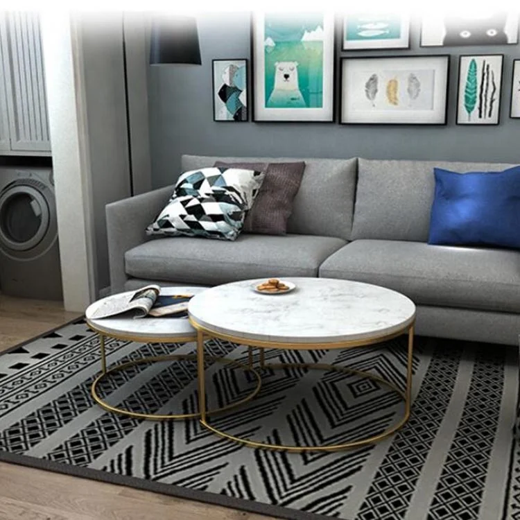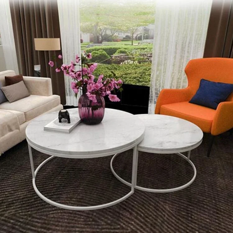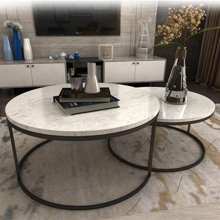 Natural marble Nesting Coffee Tables Set Of 2 Golden Faceted Accent luxury tea table