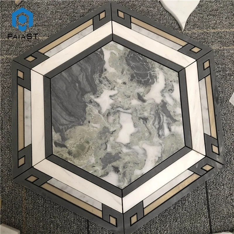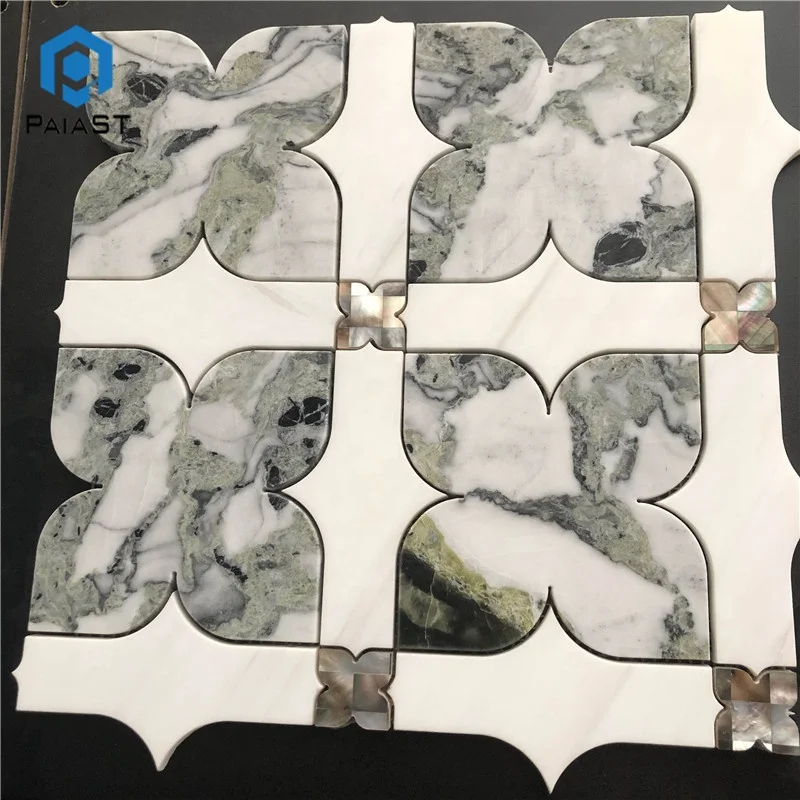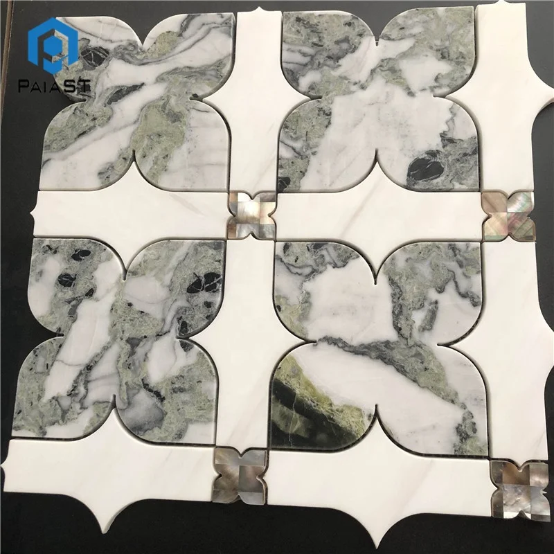 New Design Waterjet Mosaic Tile Natural White With Green Marble Mosaic Tiles For Interior Bathroom Wall Decor