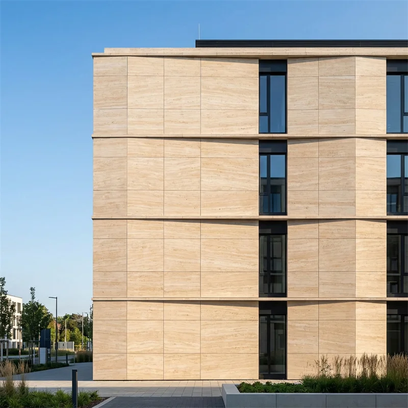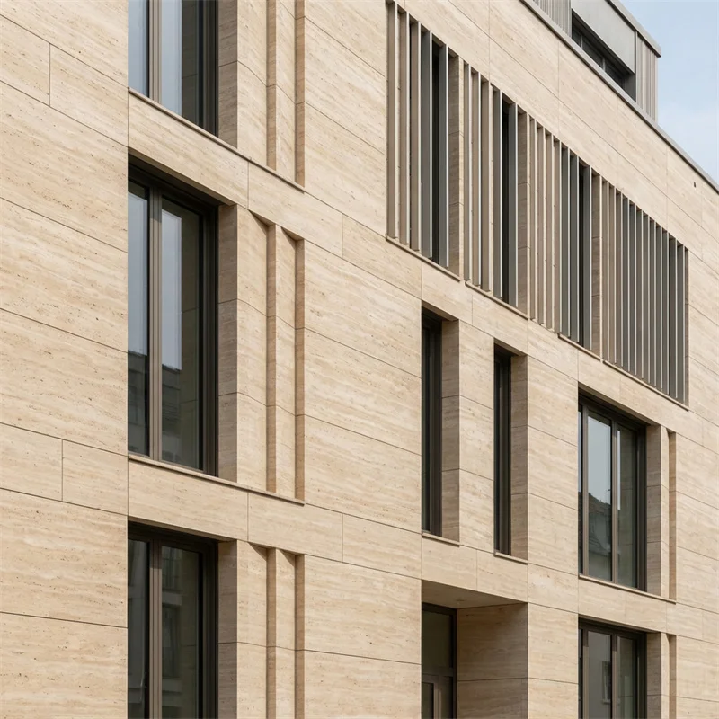 These PAIA stone panels are specially made for ventilated facade systems, which means they allow air to flow behind the cladding. This airflow helps to keep the building cool in summer and prevents moisture buildup, protecting your walls from damage caused by water or extreme weather conditions. The natural properties of travertine also make the cladding durable and long-lasting, ensuring that your building’s exterior remains attractive over time with minimal maintenance.