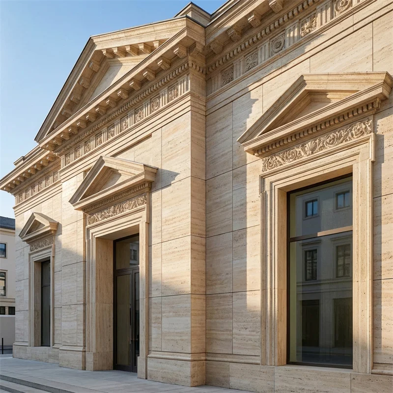 The cream beige color of the PAIA travertine works well with many different exterior colors, materials, and design styles. Whether you want a neutral, understated look or a warm, inviting facade, these stone panels provide a natural elegance that enhances the curb appeal of residential, commercial, or public buildings. The natural veins in the stone make each panel unique, giving your building a custom and authentic look that cannot be replicated by synthetic materials.