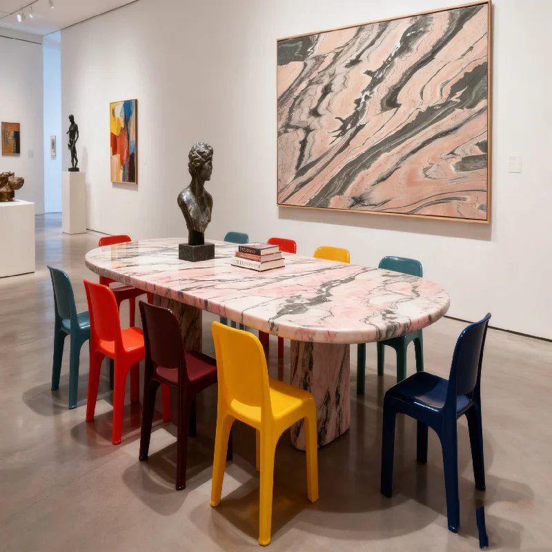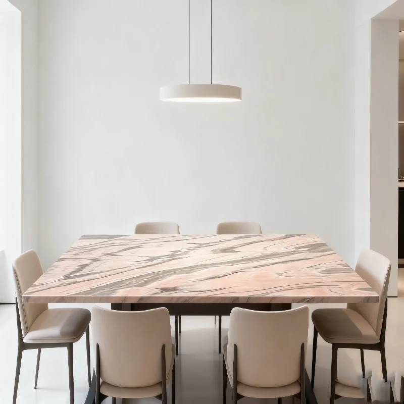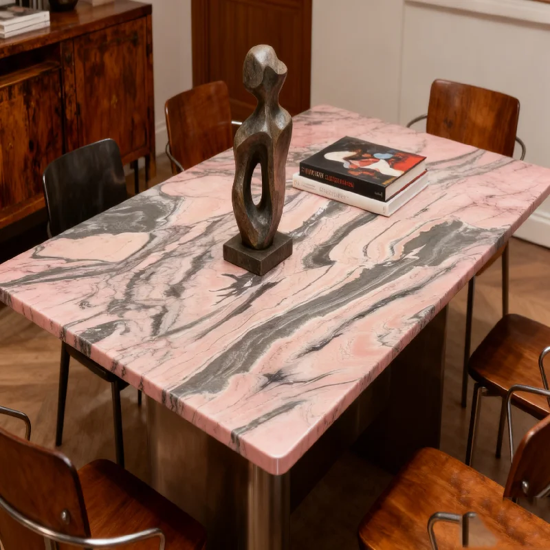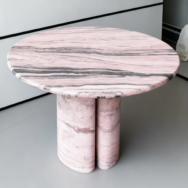 This marble table blends natural beauty with modern design and practical features. Its combination of a unique pink marble top, waterproof surface, low plinth support, and eco-friendly materials makes it a versatile and lasting addition to any home. Whether you use it as a dining table, coffee table, or side table, it will add a touch of luxury and sophistication.
