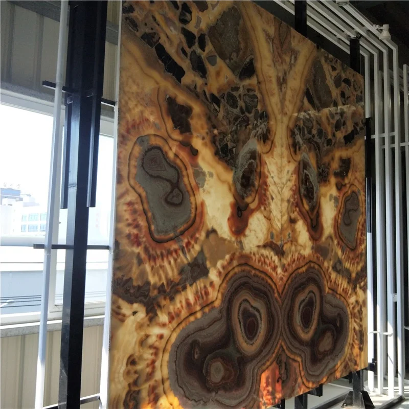A2:onyx has always been associated with decoration,Onyx is mainly used as a material for interior design.A composite material composed of onyx and glass or aluminum honeycomb is used as a background wall.widely used in the advanced decoration of hotels, villas, suites and other places,suitable for home decoration TV, sofa background wall decoration, floor decoration, villa interior wall decoration.
