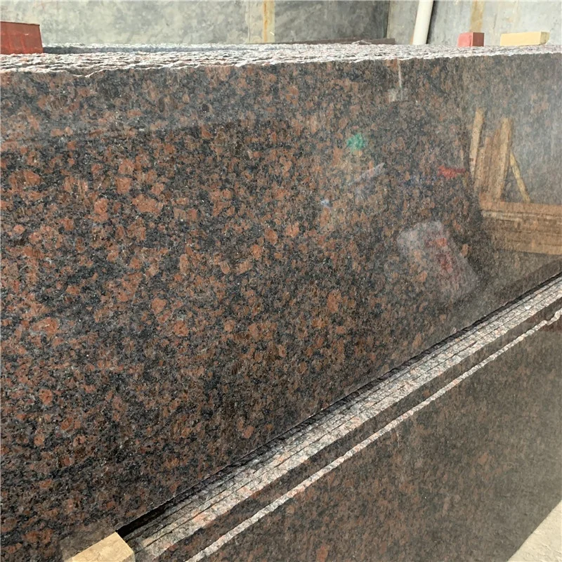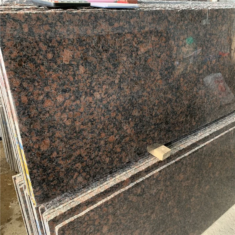 Гранитные плиты красно-коричневого цвета по выгодной цене для облицовки наружных стен и кухонных столешниц; коричневая гранитная напольная плитка