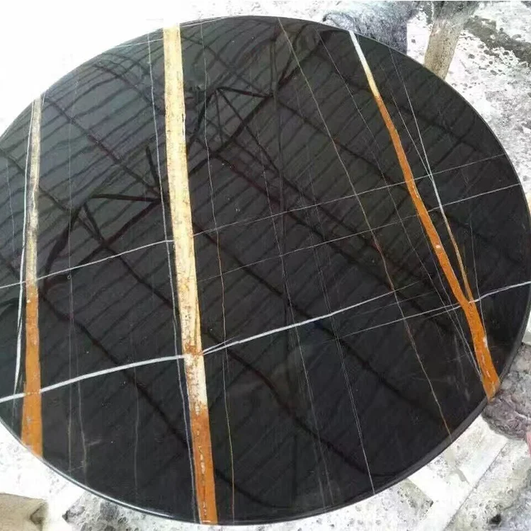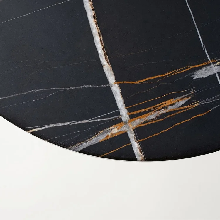 Кофейный столик круглой формы из черно-золотого мрамора Lauren с золотистыми прожилками