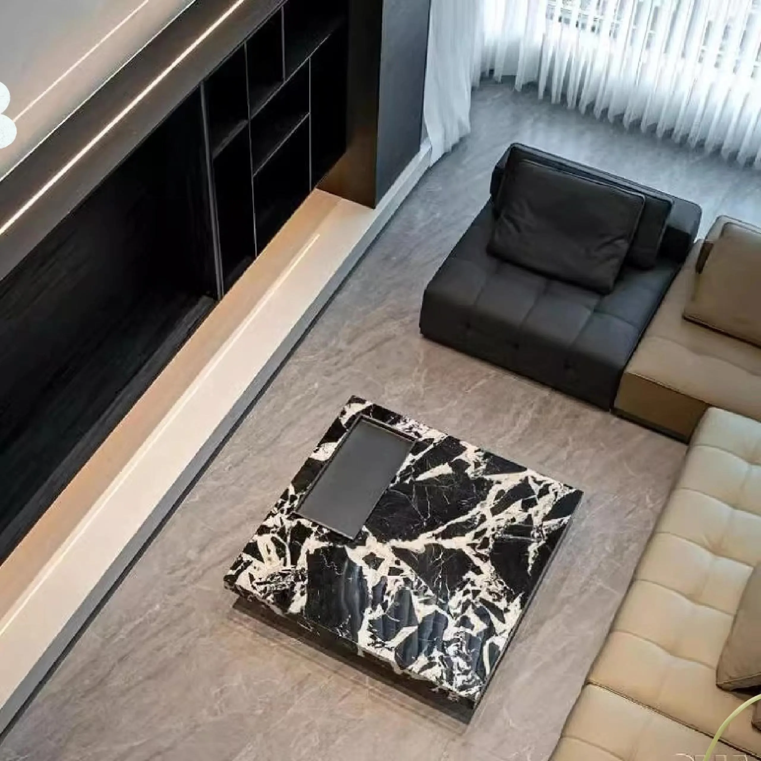Современный минималистичный журнальный столик из черного мрамора, люкс-столешница для использования в помещениях и на улице, полированная поверхность для гостиной