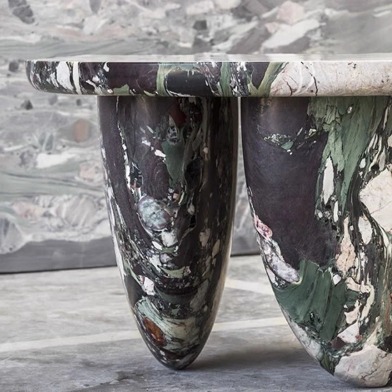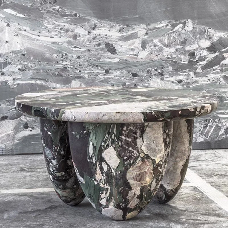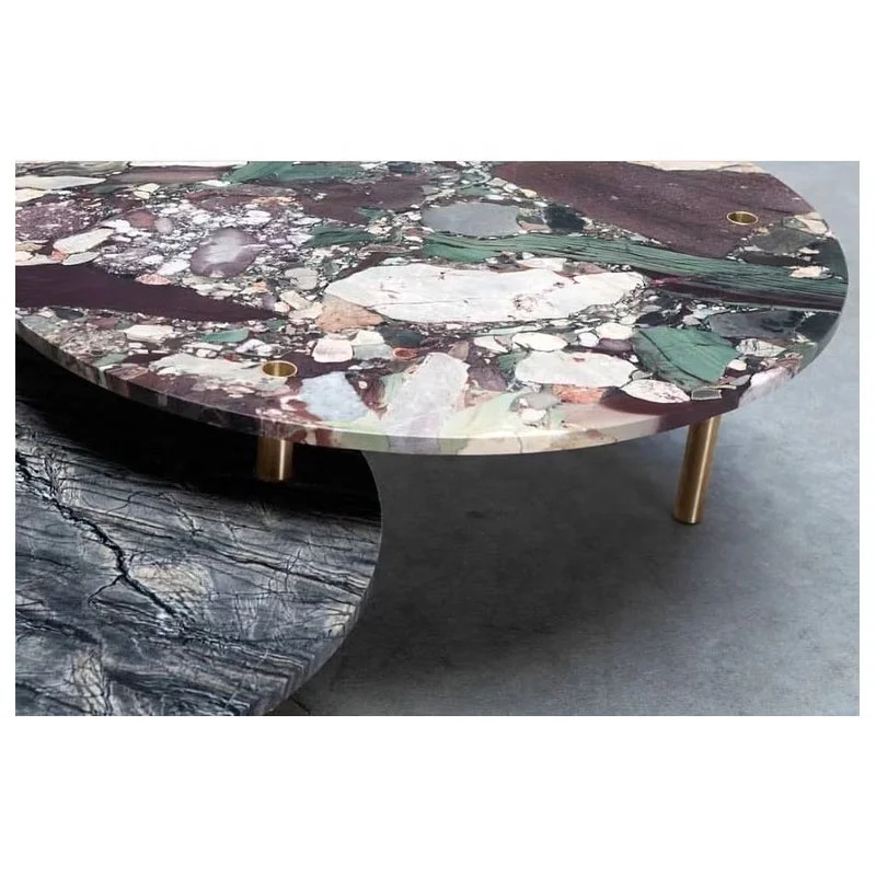 Кофейный столик из натурального камня и французского зелёного мрамора, комплект из 3 предметов для гостиной, чайный столик, мебель