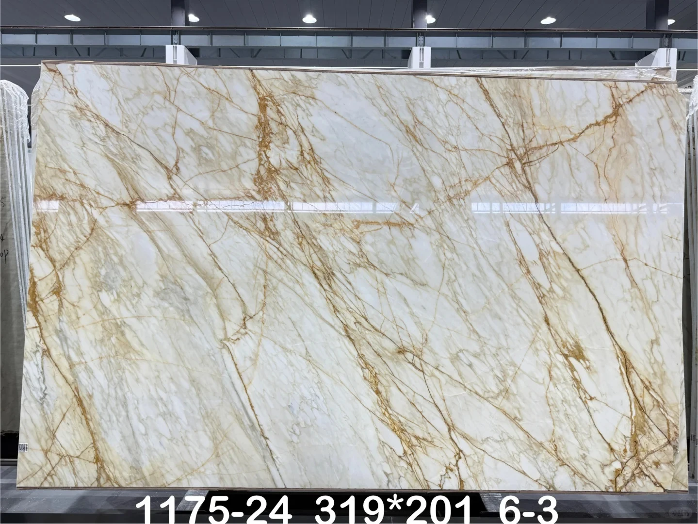 แผ่นหินอ่อน Calacatta Super Gold Cresto ดีไซน์ทันสมัย ขัดมันขนาดใหญ่สำหรับวิลล่า ปูผนังและพื้น ดีไซน์หิน