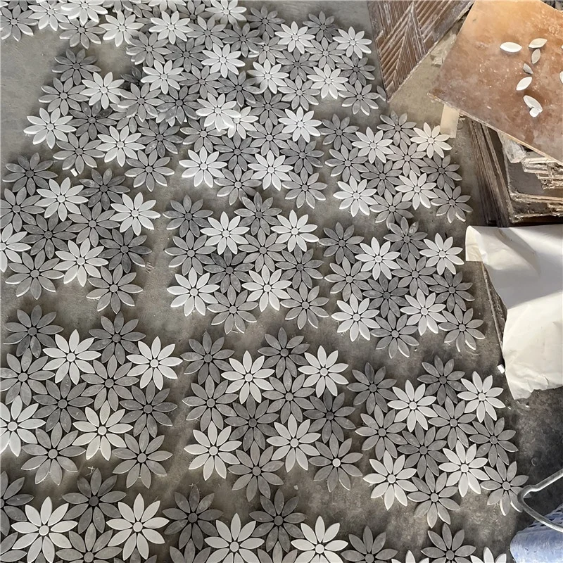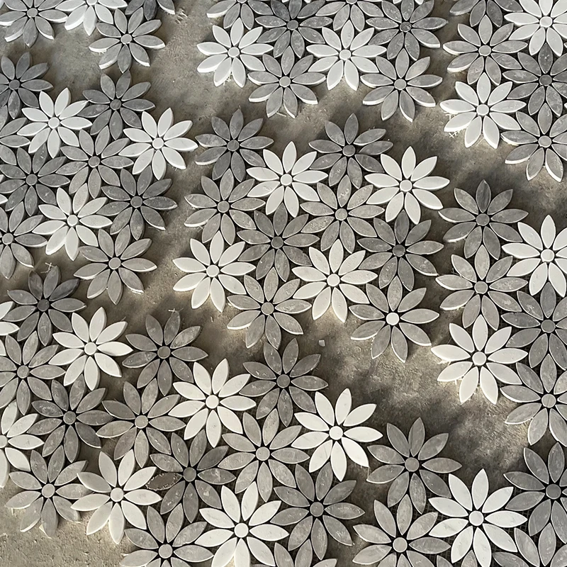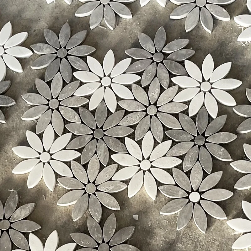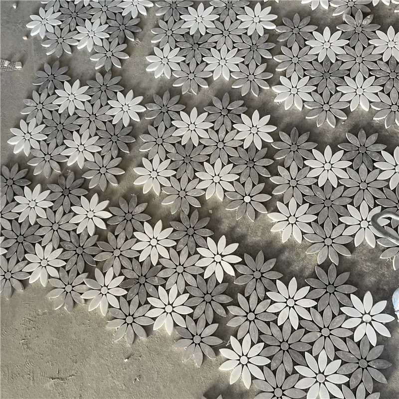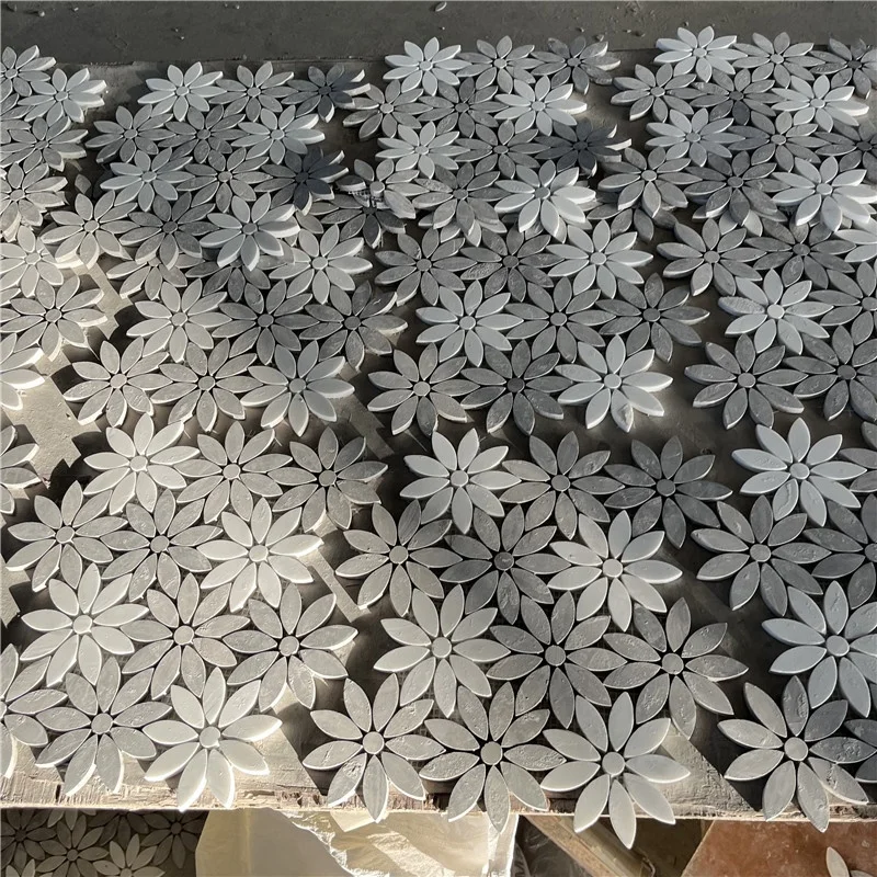 กระเบื้องโมเสกหินอ่อนสีขาวคุณภาพสูง ดีไซน์สวยงาม สำหรับผนังหลังเตาในห้องครัวและผนังห้องน้ำ