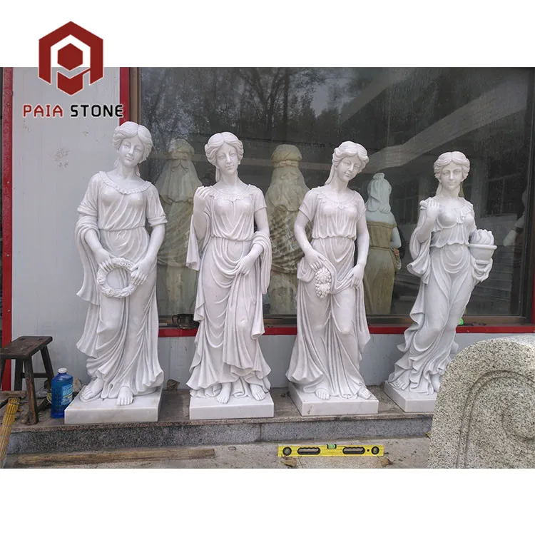 ปั้นจั่นกลางแจ้งสี่ฤดูหินอ่อนสไตล์อิตาเลียนสีขาวขนาดใหญ่พื้นผิวมันวาวทำด้วยมือใช้สำหรับโรงแรม
