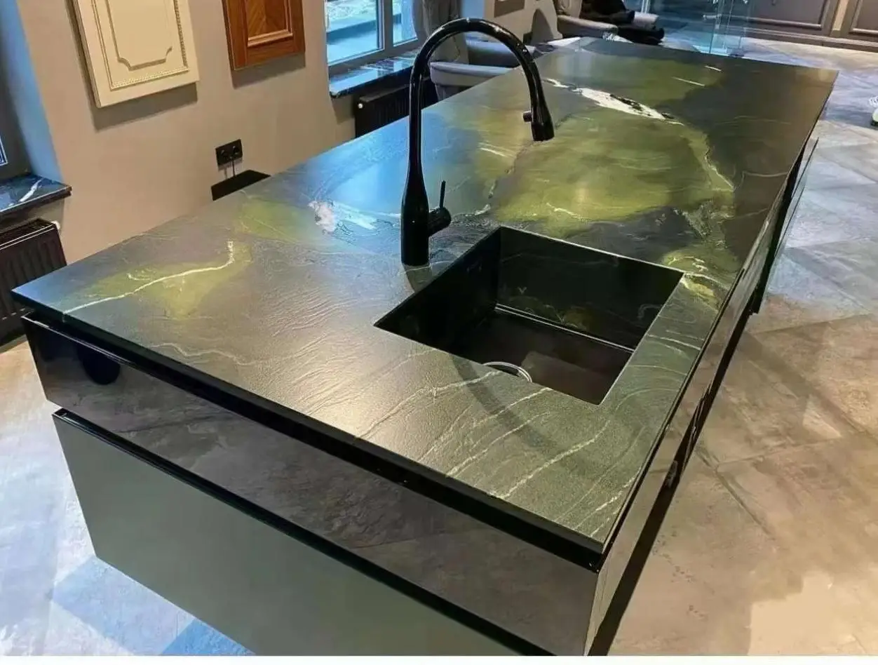 Mataas na Kalidad na Avocado Green Marble Stone na Kusinang Countertop para sa Luho ng Interior Design para sa Panloob na Island, Bathroom Vanity, at Table Tops