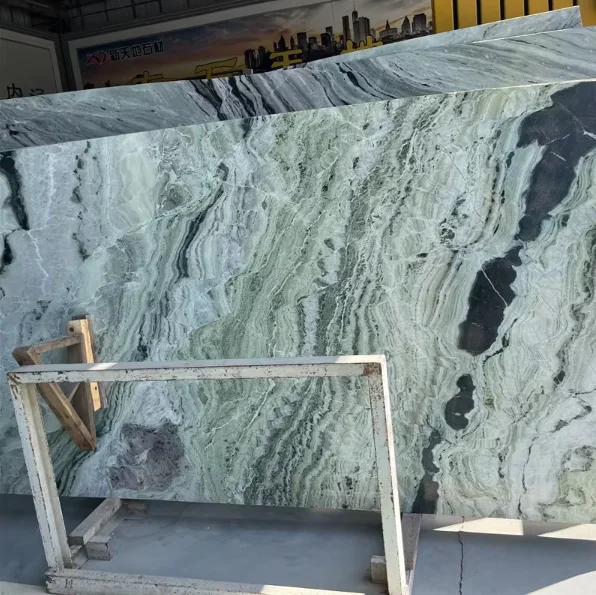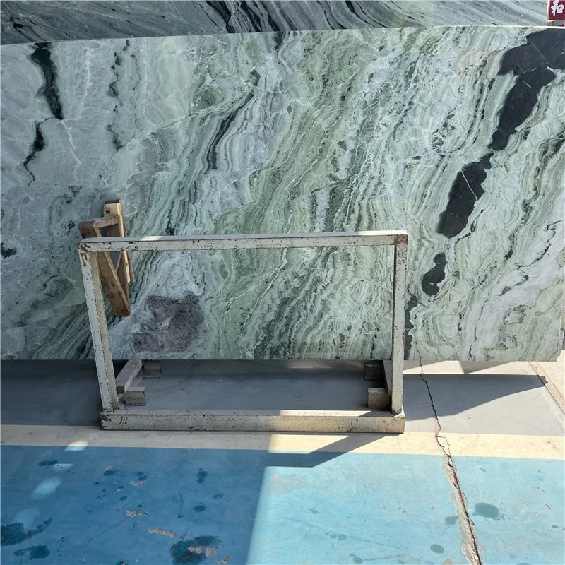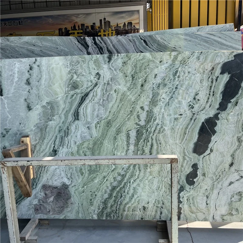 Yüksek Kaliteli Beyaz-Yeşil Mermer Plaka Karoları, Doğrudan Fabrikadan, Doğal, Modern, Parlak Cilalı Shangri-La Yeşili Mermer, Duvar ve Zemin İçin