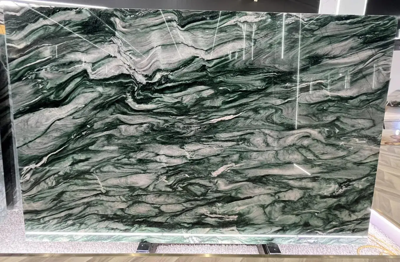 Modern Lüks İç Kapı Mermer Banyo Dolapları, Ev Yenileme ve Mutfak Tezgâhı İçin Doğal Yeşil Mermer Taş