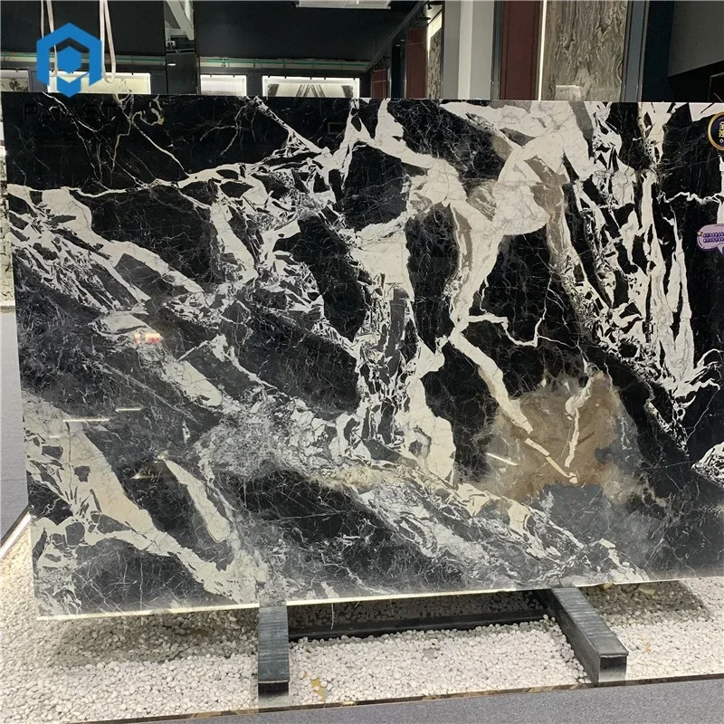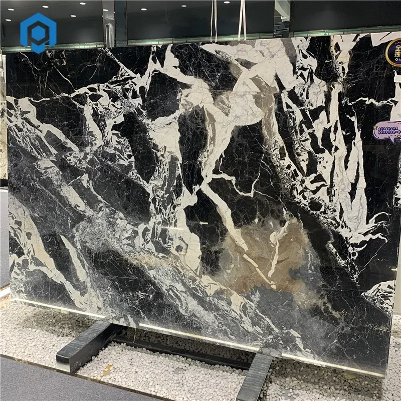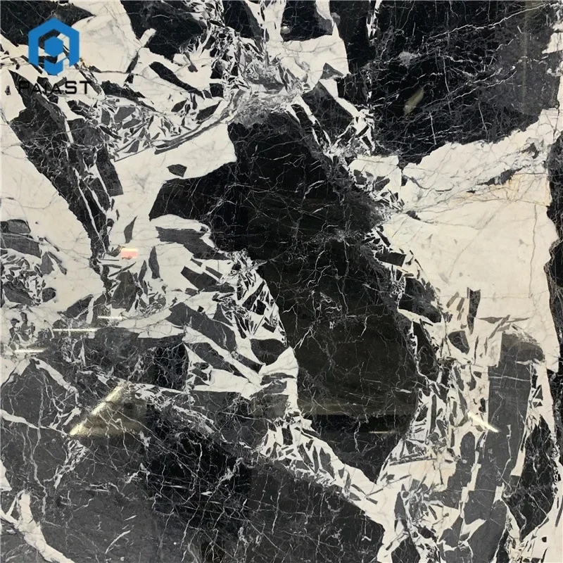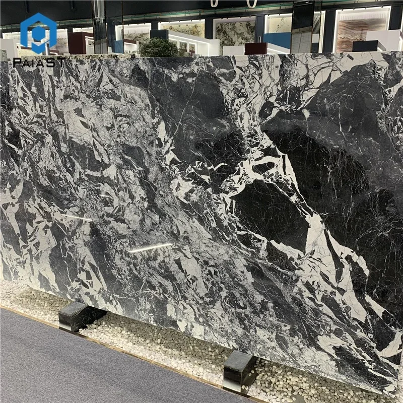 Modern Doğal Parlak Siyah ve Beyaz Damarlı BVLGARI Gri Mermer Plakası, Banyo Duvarı ve Zemin Karoları İçin