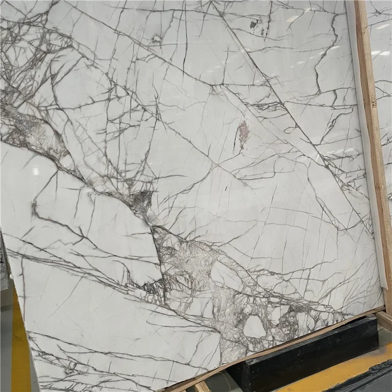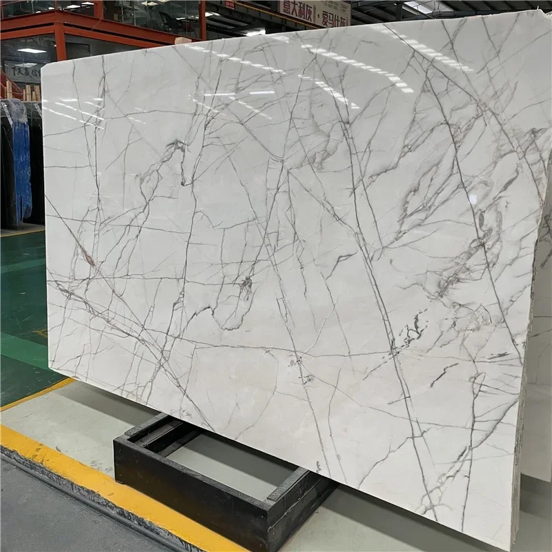 Doğal Karolar ve Ev İçin Ölçüye Göre Kesilmiş Spider Beyaz Gri Mermer