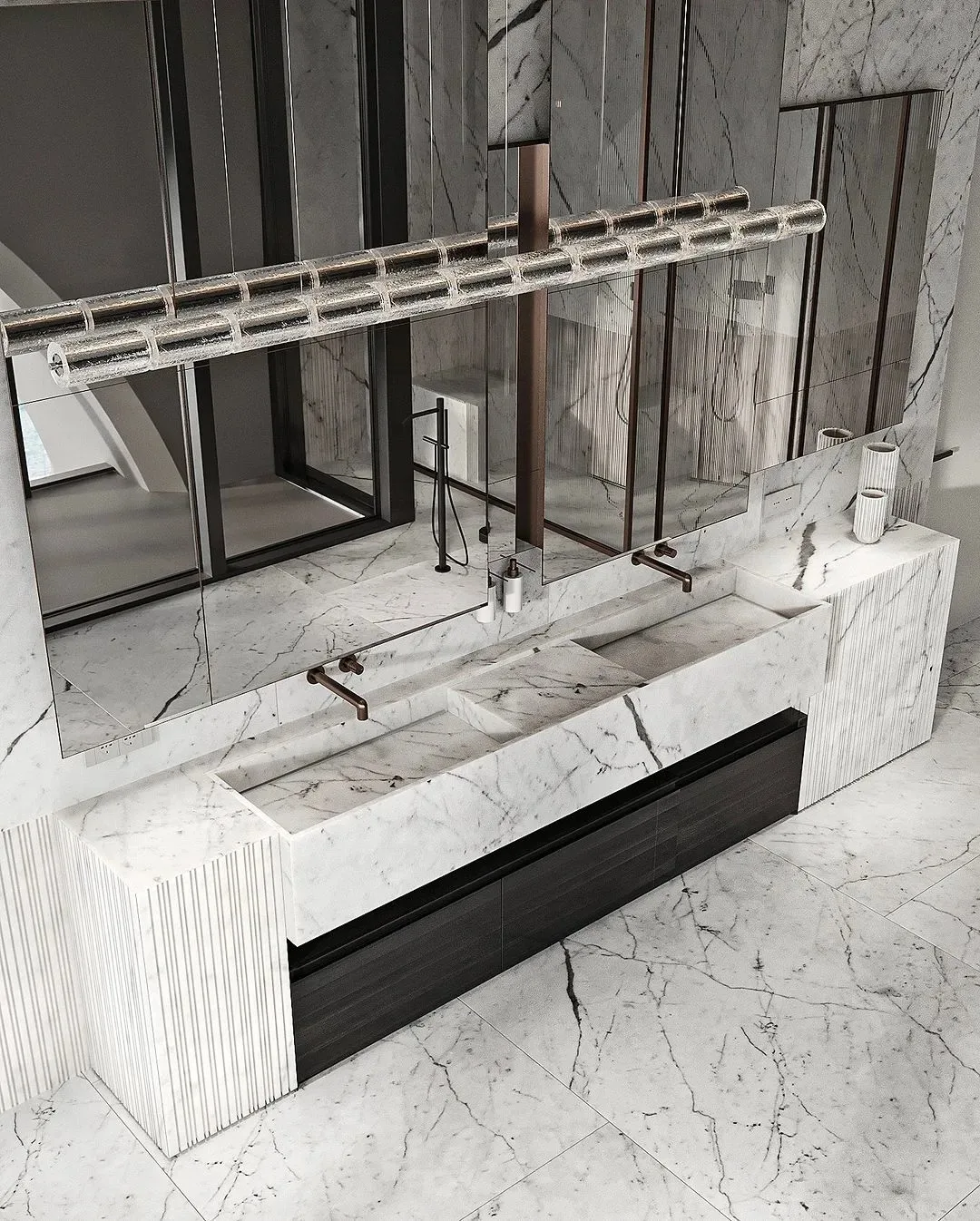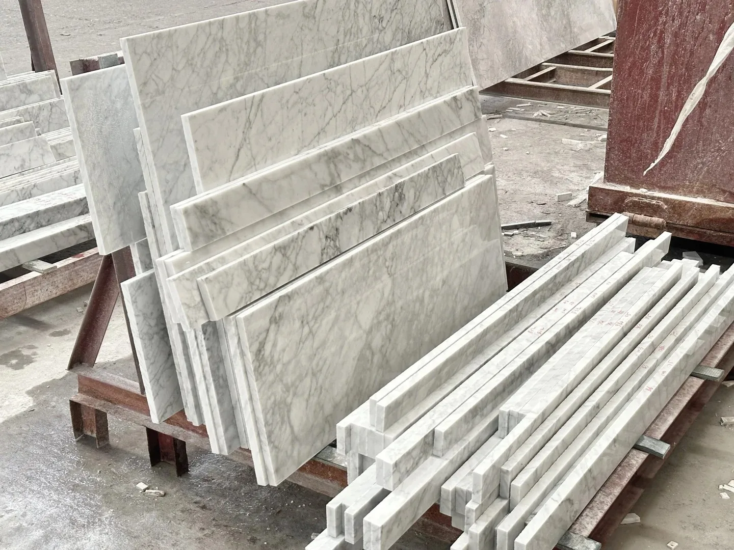 Banyo Dolapları, İç Kapılar, Duvar Panelleri, Otel ve Villa Döşemeleri, Duvar ve Merdiven Kaplamaları İçin Premium Doğal Beyaz Mermer Plakası – Fabrika