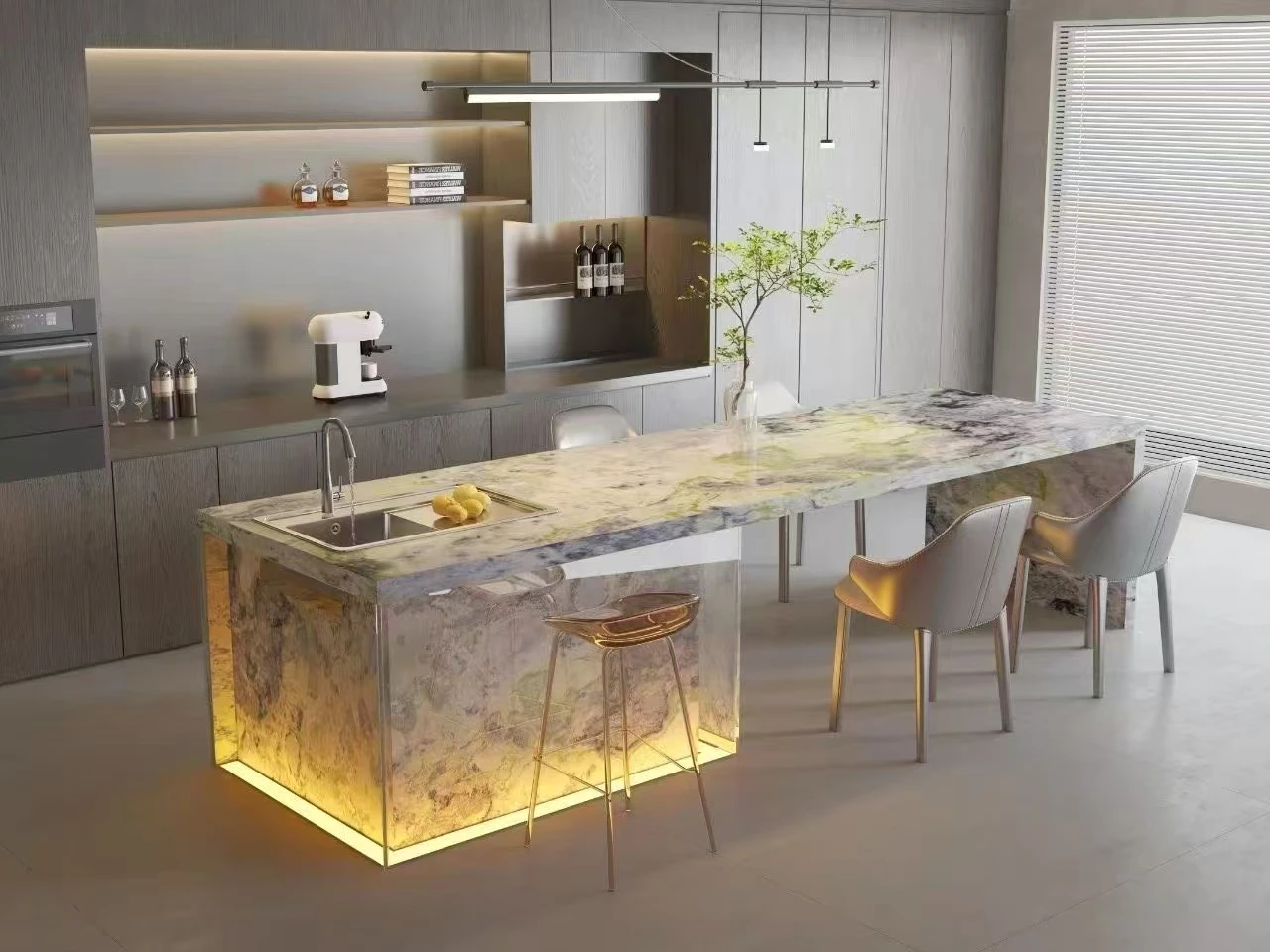 Світлі прозорі природні напівпрозорі зелені мармурові кварцитові плити для кухонних лічильників, столиків у ванну кімнату, підсвічених фонових стін