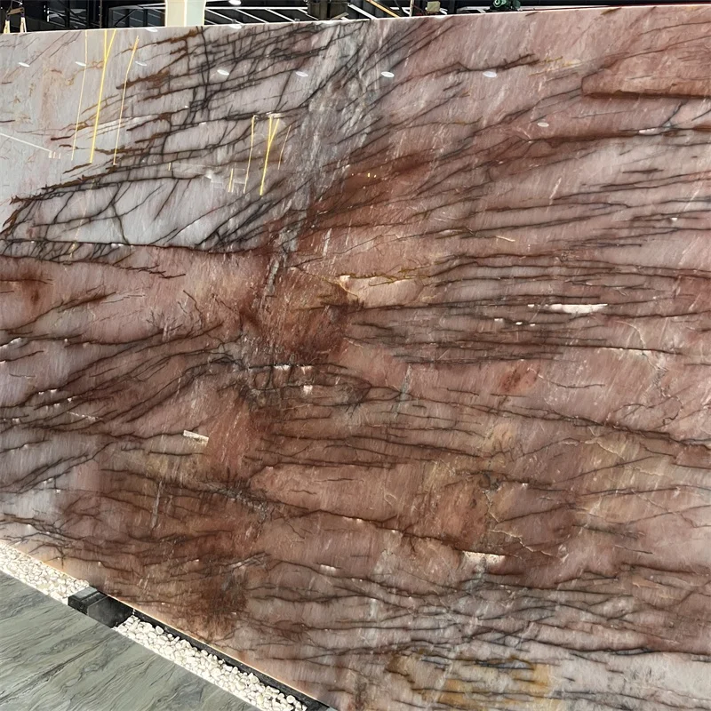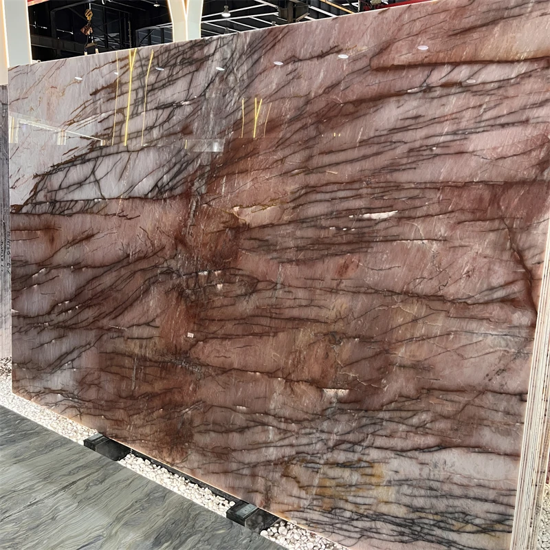 Люкс-бразильські екзотичні підсвічені кварцитові плити «Cosmopolitan», рожевий кварцит для оздоблення фонових стін