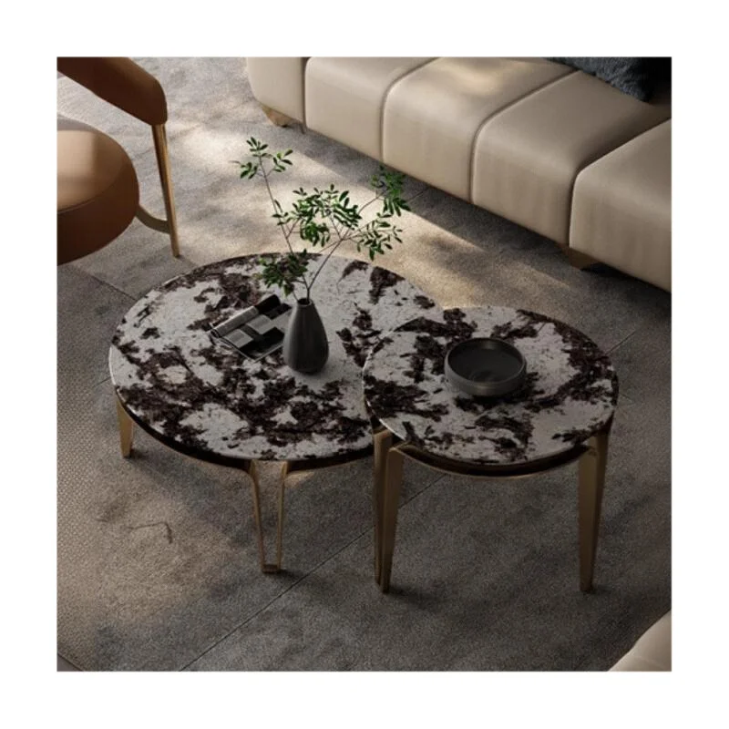 Zamonaviy luks yashash xonasi kofe stoli tabiiy marmar tosh bilan, yengil chetli — yangi dizayn, bir nechta dizaynerlar tomonidan ishlab chiqilgan