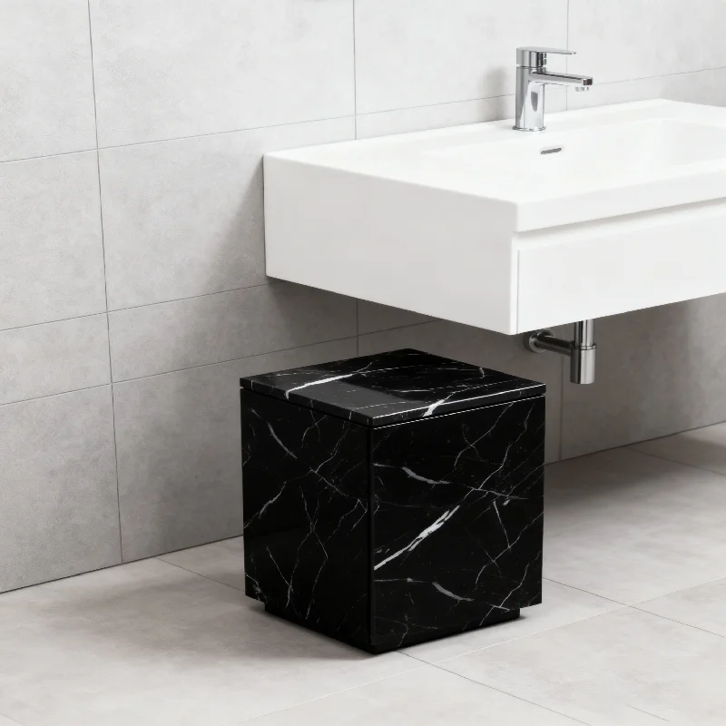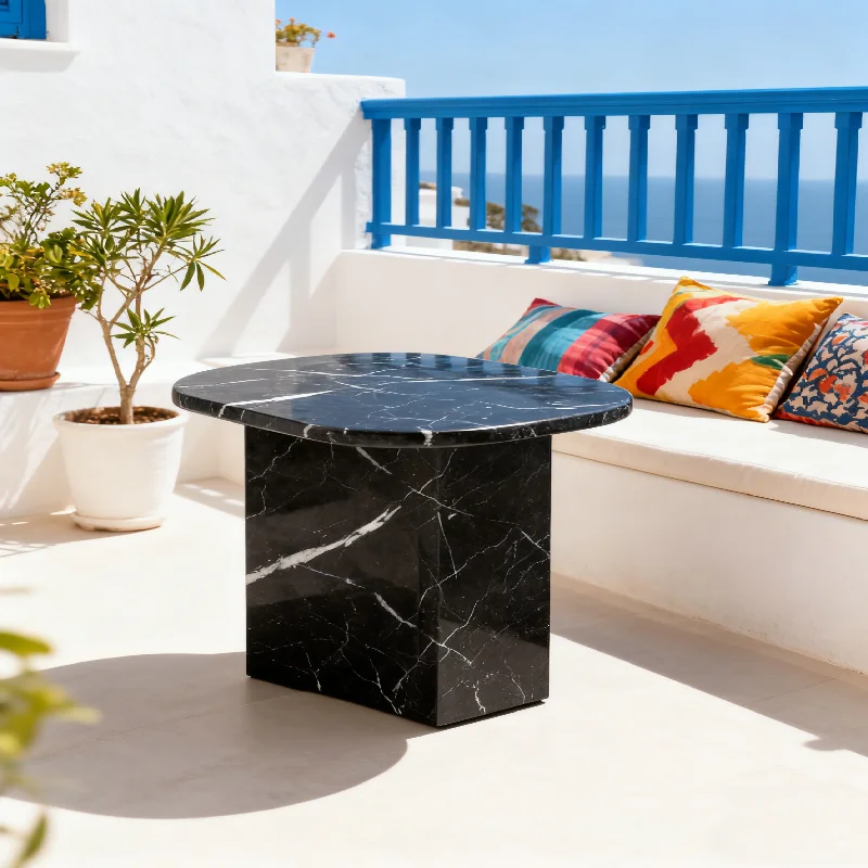 Nero Marquina marmari tosh ko'prik stoli, moslashtirilgan luks tabiiy marmar yon stoli, qora marmar ko'prik yon stoli
