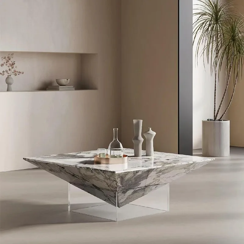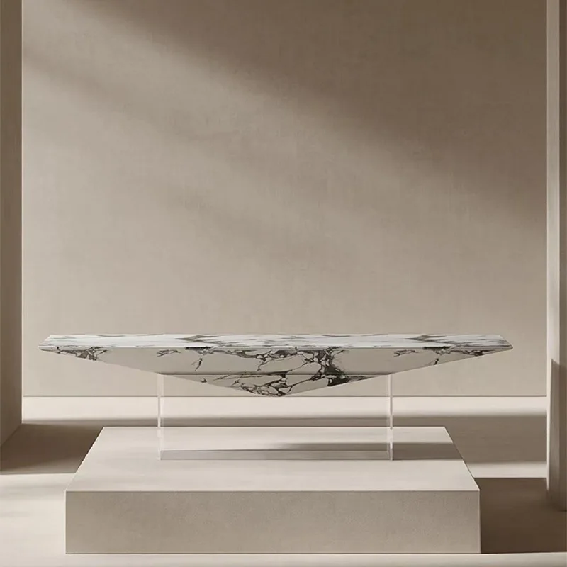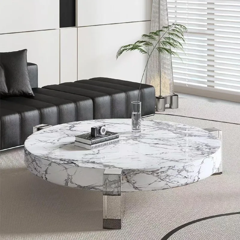 Zamonaviy uslubdagi noaniq aylana shaklidagi kofe stoli, uy yoki villya uchun ovqatlanish va mehmonxona mebellari to'plami