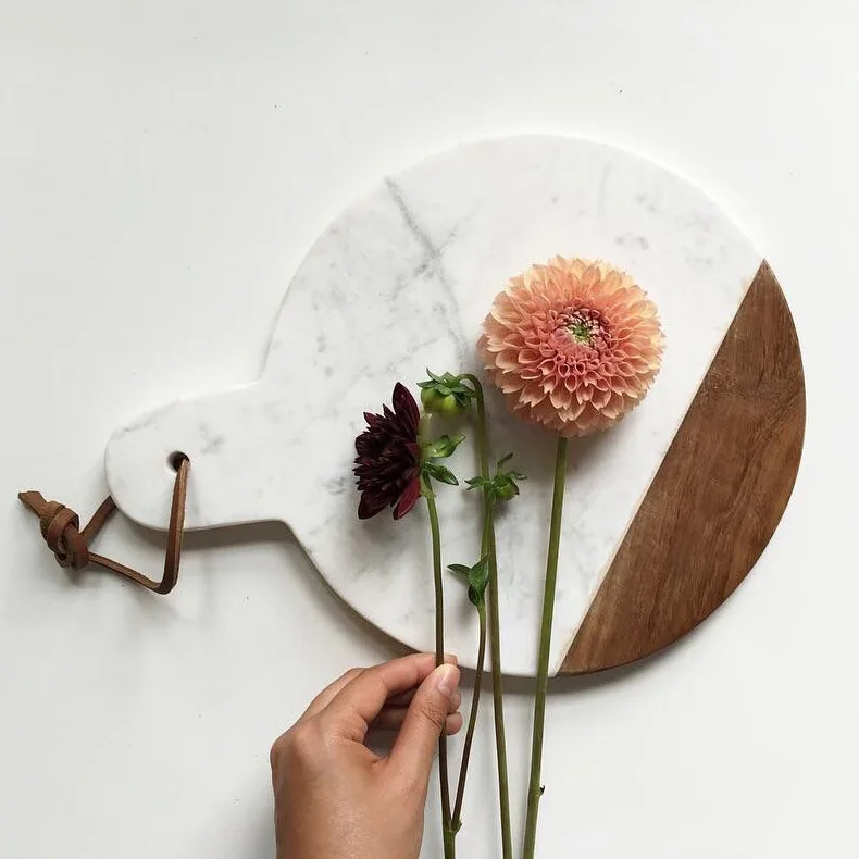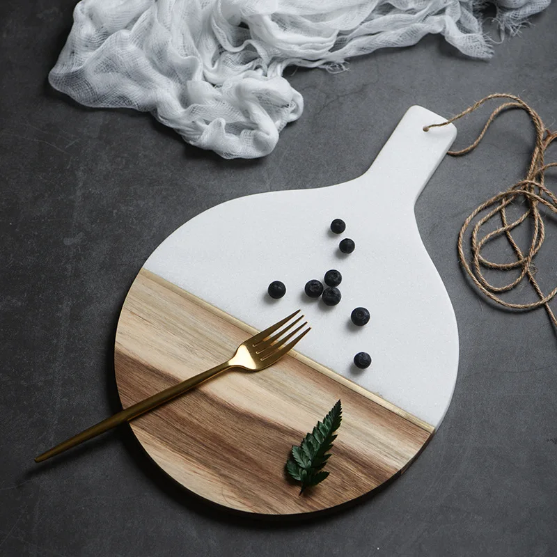 Yevropa va Amerika uslubidagi stejk toshi, gʻarb uslubidagi kesish doskasi, kek katori, ovqatlik tarelka, kesish doskasi, marmar va qattiq yogʻoch, mis bilan birga