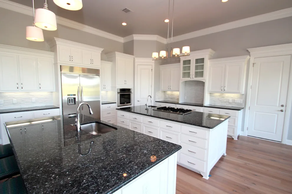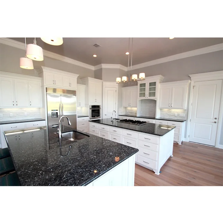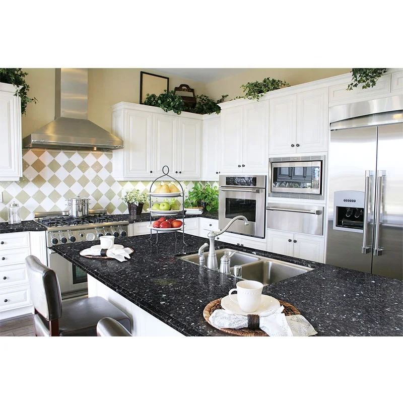 Bếp prefab nhà ở đá tự nhiên đá granit xanh Pearl mặt bàn bếp đảo bếp đá mặt bàn trang điểm
