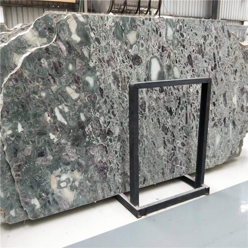 Tấm đá cẩm thạch màu xanh lá đậm dùng cho sàn và tường phòng khách